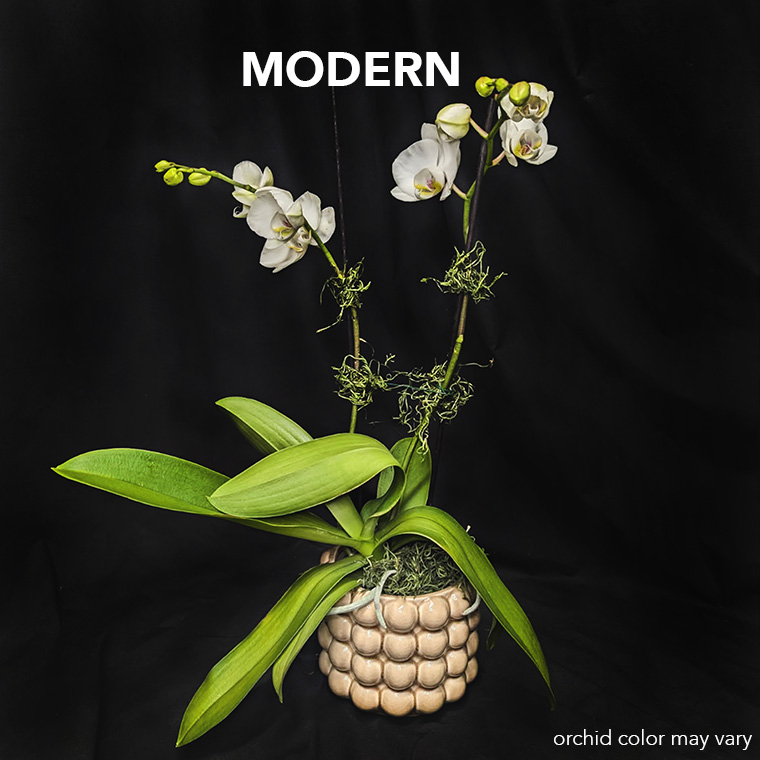 A beautiful phalaenopsis orchid houseplant in the container of your choice. Each plant comes with detailed care instructions. Orchid colors may vary.